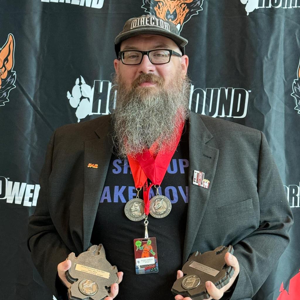 - 9-19-24 – at horrorhound weekend (sept 13-15, 2024), jeremy’s screenplay “another night at beaver’s” won four of the five awards it was nominated for: best feature script, judges choice, best characters, best dialogue